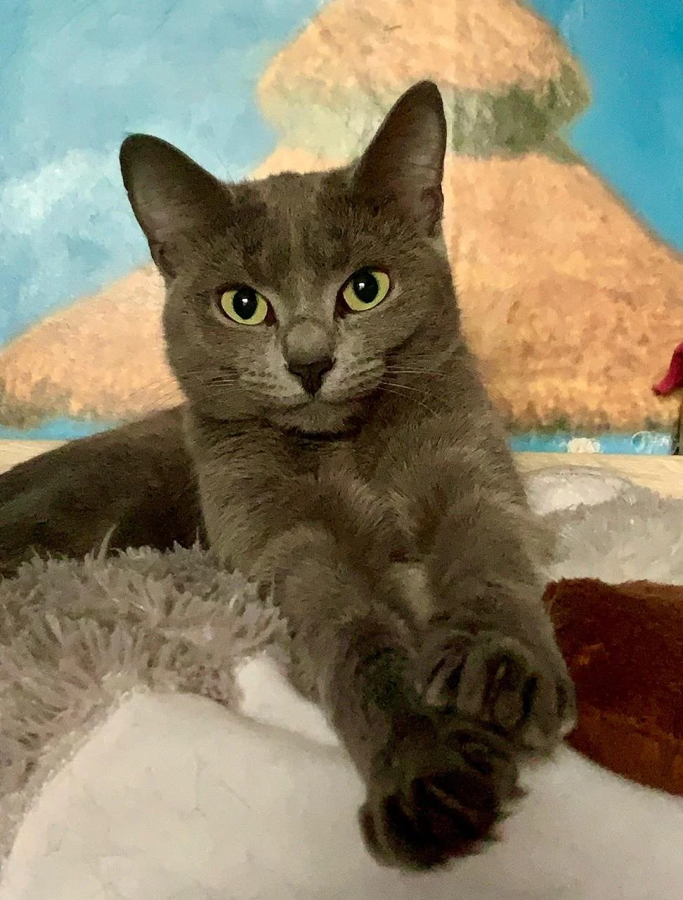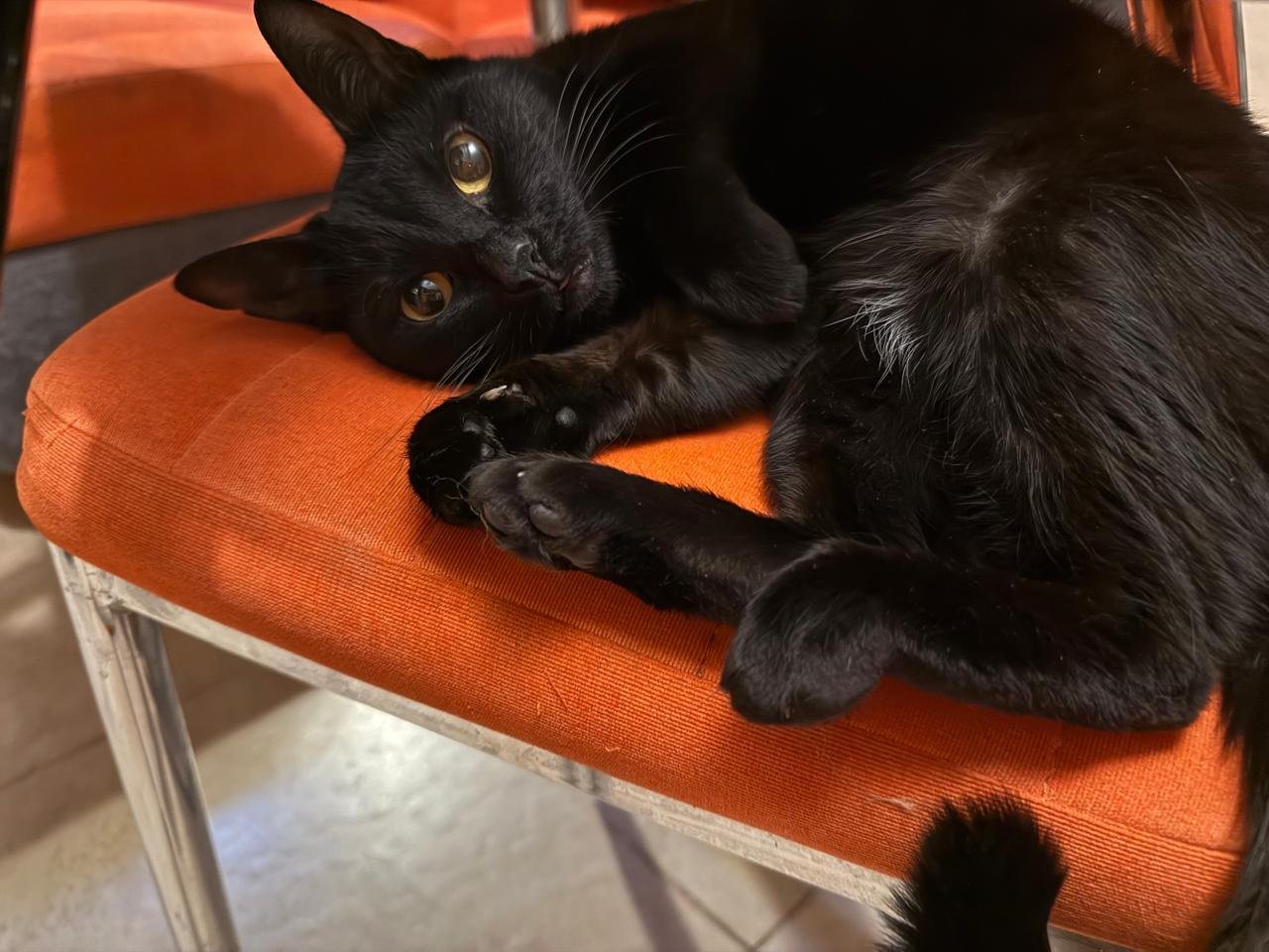 Really good mother, loves her human, reacts to command ,, Kiss me!” and stretches her neck up and kisses, can defend her kittens really well, playful, super smart, can jump and climb very high and look at you from there, adaptable, loves gentle music such as violin.